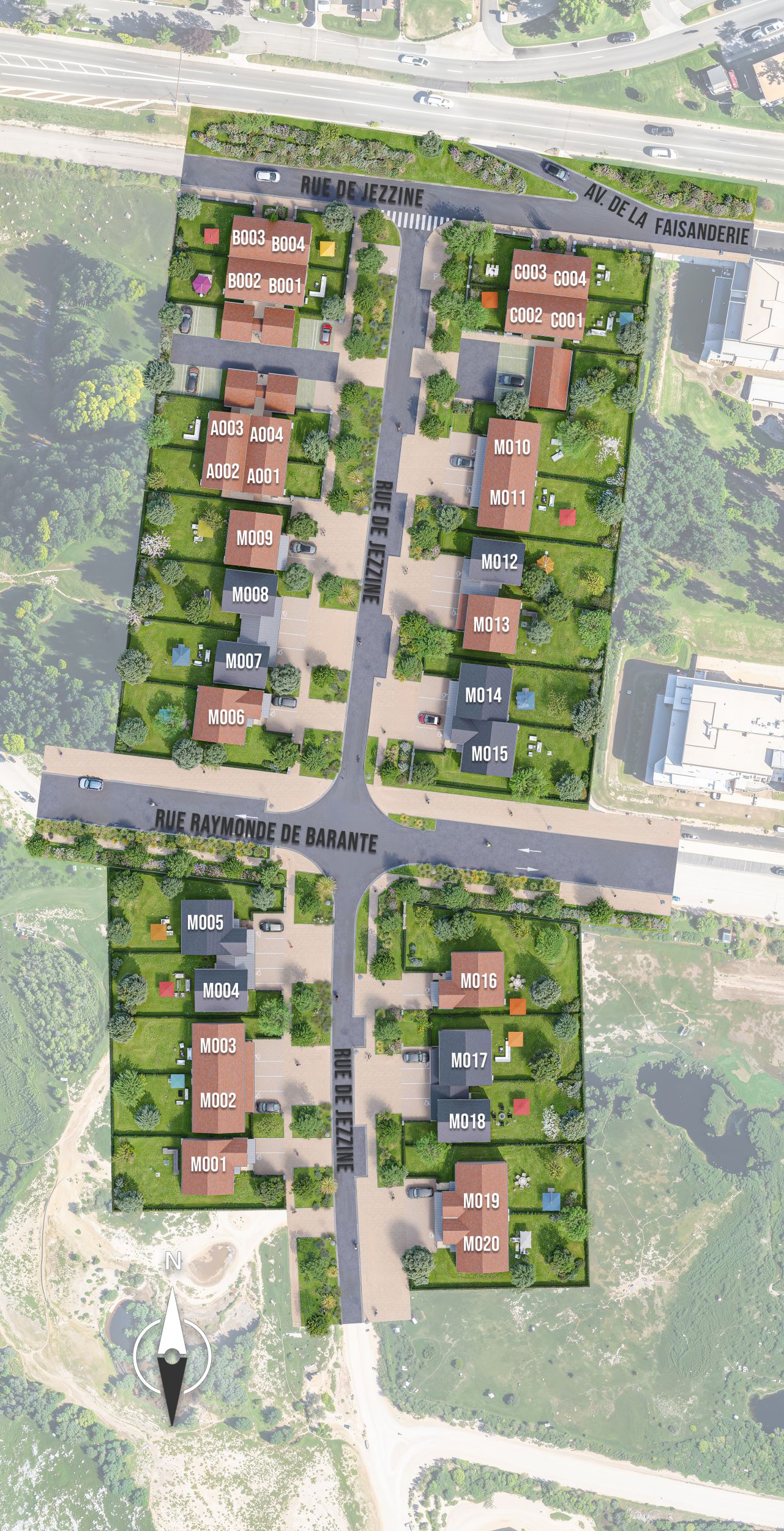 « LES JARDINS DE JEZZINE » proposent 20 belles maisons de 4 ou 5 pièces, de 82 à 114 m². Pour les trois modèles, le rez-de-chaussée est entièrement dédié à la convivialité avec un magnifique séjour prolongé par une cuisine ouverte. Bien sûr, il donne sur le jardin privatif, à apprécier sans modération à la belle saison. Le garage attenant est parfait pour vider le coffre de la voiture après les courses ou ranger les outils de jardinage. À l’étage, 3 ou 4 chambres spacieuses se partagent une salle de bains pour répondre